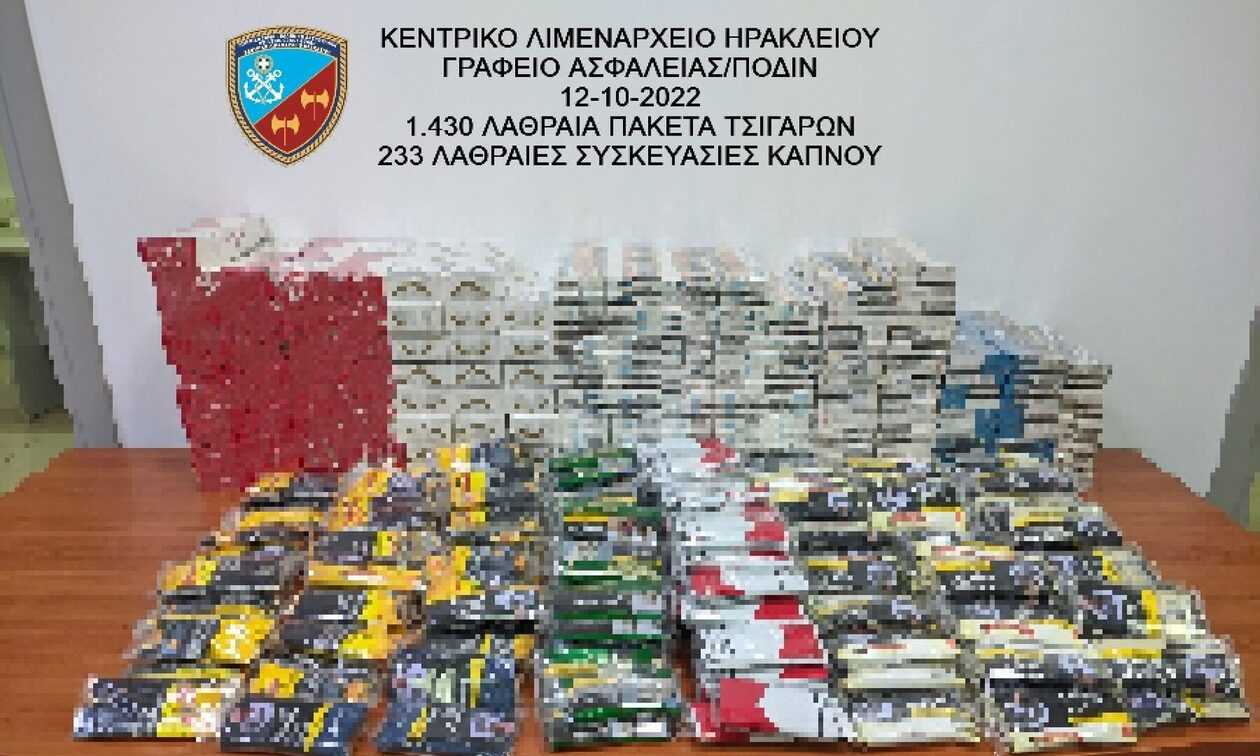 Από το Κεντρικό Λιμεναρχείο Ηρακλείου που διενεργεί την προανάκριση, κατασχέθηκαν τα παραπάνω λαθραία καπνικά προϊόντα.