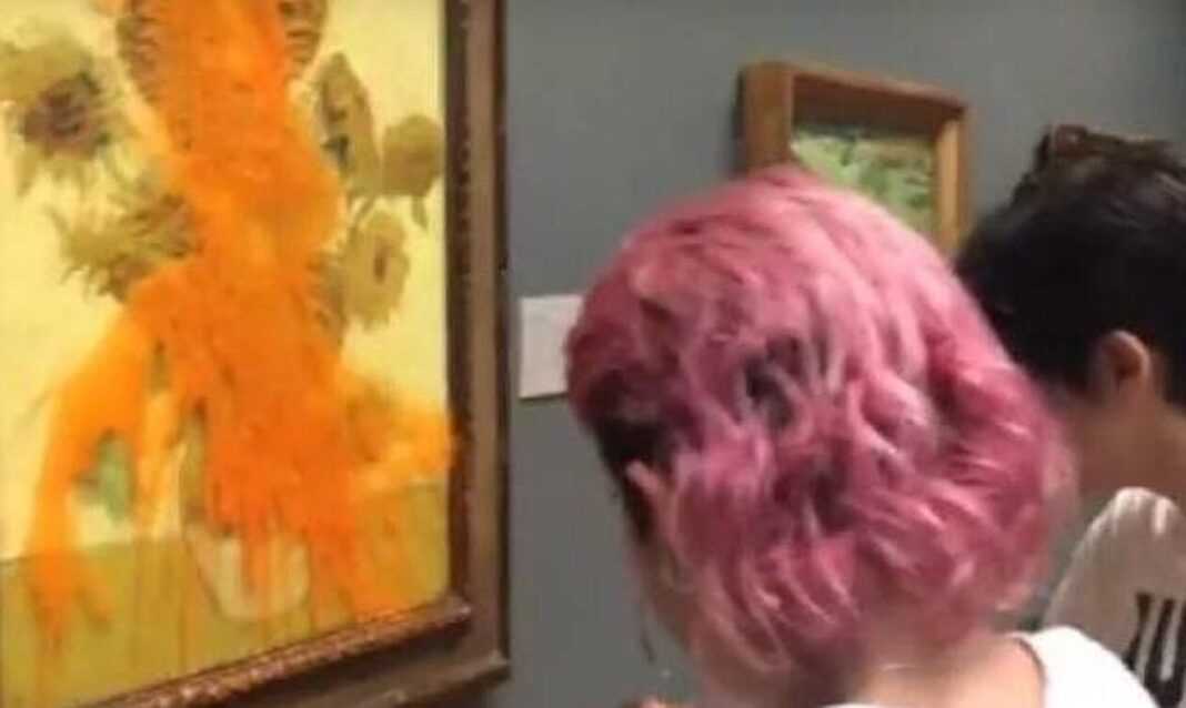 Το περιστατικό έγινε περίπου στις 11 το πρωί στη National Gallery στην πλατεία Τραφάλγκαρ και αφορά τον πίνακα «Ηλιοτρόπια» του 1888, η αξία του οποίου υπολογίζεται σε 72,5 εκατομμύρια λίρες.