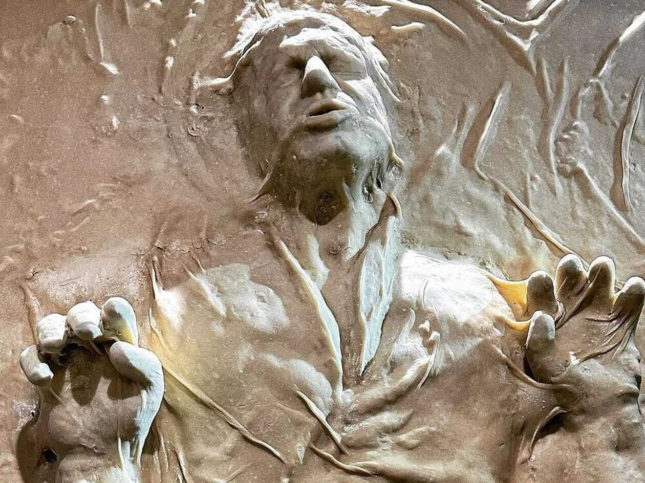 Ο Han Solo απεικονίζεται, όπως εμφανίζεται στην ταινία The Empire Strikes Back (Η Αυτοκρατορία Αντεπιτίθεται) παγωμένος σε καρβονίτη.