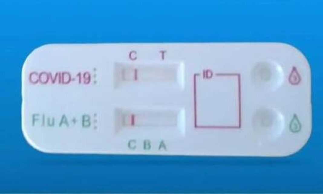 Self test: Μία σταγόνα μπαίνει για τον covid, μία στο πλακίδιο που είναι για την γρίπη.