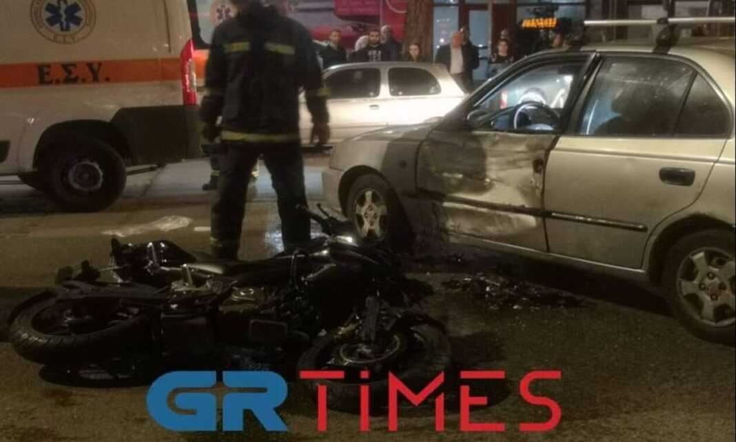 Σφοδρή ήταν η σύγκρουση της μηχανής με το αυτοκίνητο στη συμβολή των οδών Παπαναστασίου και 28ης Οκτωβρίου, στη Θεσσαλονίκη
