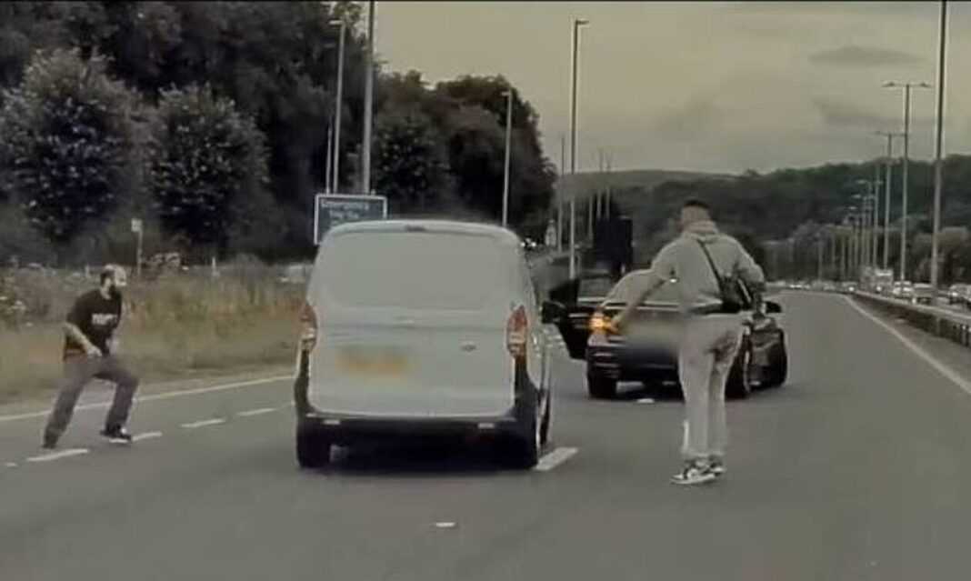 Ένα συγκλονιστικό βίντεο κατέγραψε τη στιγμή που δύο άνδρες καταδιώκουν ένα βαν κατά μήκος ενός πολυσύχναστου αυτοκινητόδρομου στην Ουαλία