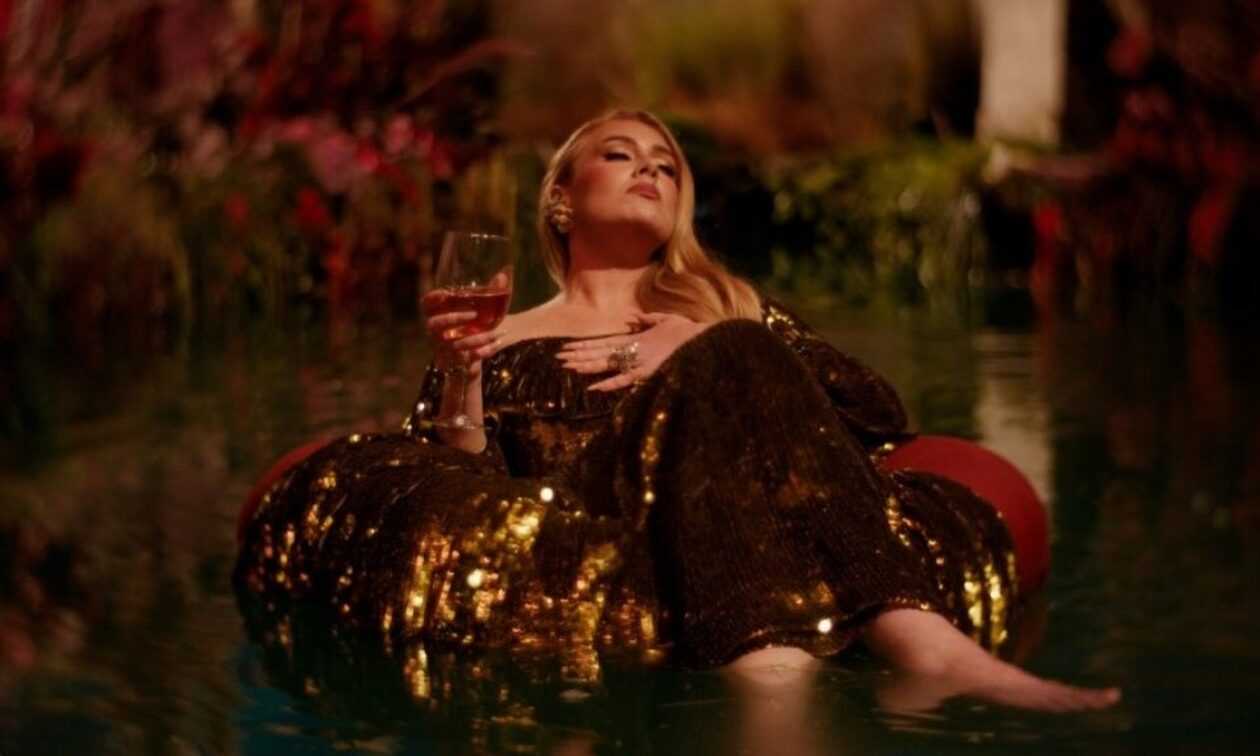 Στο νέο βιντεοκλίπ του τραγουδιού I Drink Wine η Αντέλ επιπλέει στο νερό, πίνει κρασί και τη ραίνουν με λουλούδια