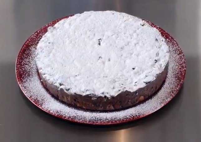 Αφήνουμε το κέικ να κρυώσει τελείως πάνω σε σχάρα. Το τυλίγουμε (κρύο) σφικτά με διάφανη μεμβράνη και το διατηρούμε σε αεροστεγές δοχείο (π.χ. σε ένα ευρύχωρο πλαστικό τάπερ), σε ένα δροσερό, ξηρό και δροσερό ντουλάπι. Εκεί διατηρείται για 1 μήνα μέχρι το σερβίρισμα (απορροφά καλύτερα τα αρώματα και τις γεύσεις των υλικών και δένει ωραία η υφή του). Όταν πρόκειται να σερβίρουμε, το πασπαλίζουμε με άχνη.