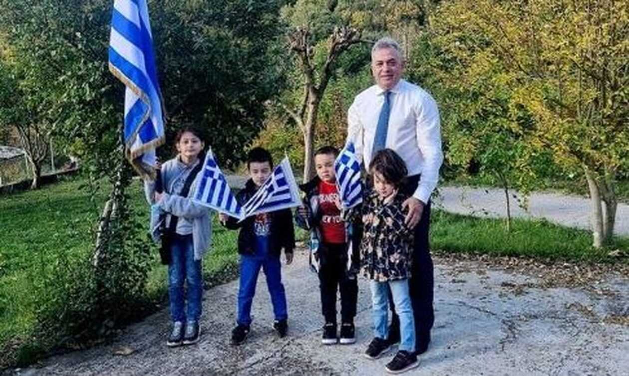 Ήπειρος: Ανήμερα της 28ης Οκτωβρίου οι τρεις μικροί μαθητές μαζί και η μοναδική μαθήτρια του Δημοτικού Σχολείου, συνοδεύτηκαν από τον Δήμαρχο Γεωργίου Καραϊσκάκη Περικλή Μίγδο στην δοξολογία και την κατάθεση στεφάνων