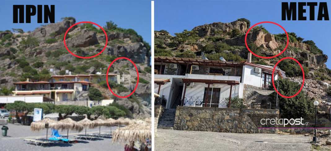 Η κατολίσθηση του τεράστιου βράχου επάνω στα ενοικιαζόμενα δωμάτια στην παραθαλάσσια Αγία Φωτιά Ιεράπετρας Λασιθίου Κρήτης έσπειρε τον θάνατο και την καταστροφή