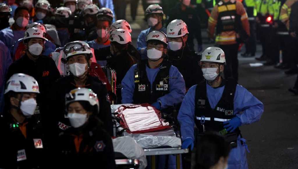 Halloween Νότια Κορέα: Το πτώμα ενός θύματος από τον τραυματισμό των αποκριών μεταφέρεται σε φορείο στη Σεούλ στις 30 Οκτωβρίου 2022. Οι επισκέπτες του πάρτι με κοστούμια να φεύγουν πανικόβλητοι, απεγνωσμένες προσπάθειες παροχής πρώτων βοηθειών στα πεζοδρόμια, δεκάδες πτώματα παρατεταγμένα κάτω από αυτοσχέδια σάβανα: στην πολυσύχναστη περιοχή Itaewon της Σεούλ, ένα αποκριάτικο φεστιβάλ μετατράπηκε σε τραγωδία το Σάββατο. Σχεδόν 150 άνθρωποι σκοτώθηκαν σε ένα κύμα πλήθους και έναν τραυματισμό, τα αίτια του οποίου είναι ακόμη αδιευκρίνιστα, σε αυτή τη δημοφιλή, κοσμοπολίτικη συνοικία της πρωτεύουσας της Νότιας Κορέας, που βρίσκεται κοντά σε μια πρώην στρατιωτική βάση των ΗΠΑ και φημίζεται για τα μπαρ και τα κλαμπ της. Δεκάδες χιλιάδες άνθρωποι -κυρίως νέοι, και πολλοί φορώντας περίτεχνες αποκριάτικες στολές- είχαν κατέβει στη συνοικία το βράδυ του Σαββάτου, για την πρώτη μεγάλη γιορτή των αποκριών από τότε που καταργήθηκαν οι περισσότεροι περιορισμοί της Κόβιντ-19.