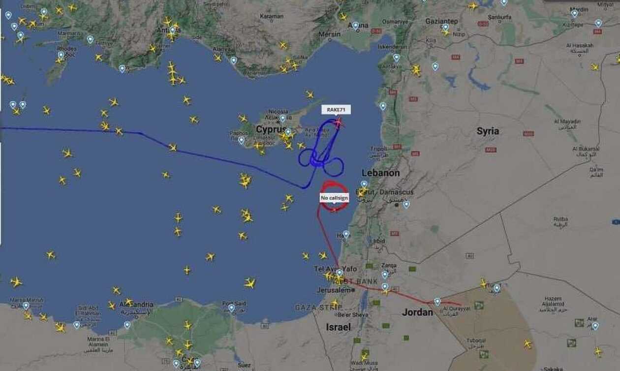 Συγκεκριμένα το αεροσκάφος εναέριου ανεφοδιασμού KC-135 Stratotanker πετούσε το βράδυ της Τρίτης στον διεθνή εναέριο χώρο ανάμεσα στη Συρία και την Κύπρο. Η πορεία που ακολούθησε και την κατέγραψε η εφαρμογή Flightradar24 όπως φάνηκε είχε έναν συγκεκριμένο σκοπό.