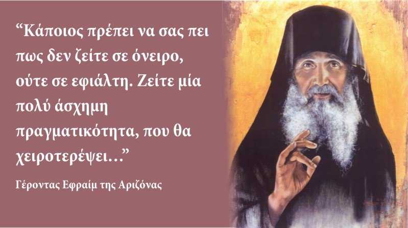 Ο γνωστός γέροντας Εφραίμ της Αριζόνα και αγιορείτης μοναχός προτρέπει πλέον: “ετοιμασία επειδή ΣΥΝΤΟΜΑ θα αρχίσουν τα πολύ δύσκολα”. Η προτροπή αυτή έγινε σε ηγούμενο μονής του Αγίου Όρους, ο οποίος τον επισκέφθηκε πρόσφατα και τον ρώτησε σχετικά με τις εξελίξεις στην Ελλάδα.