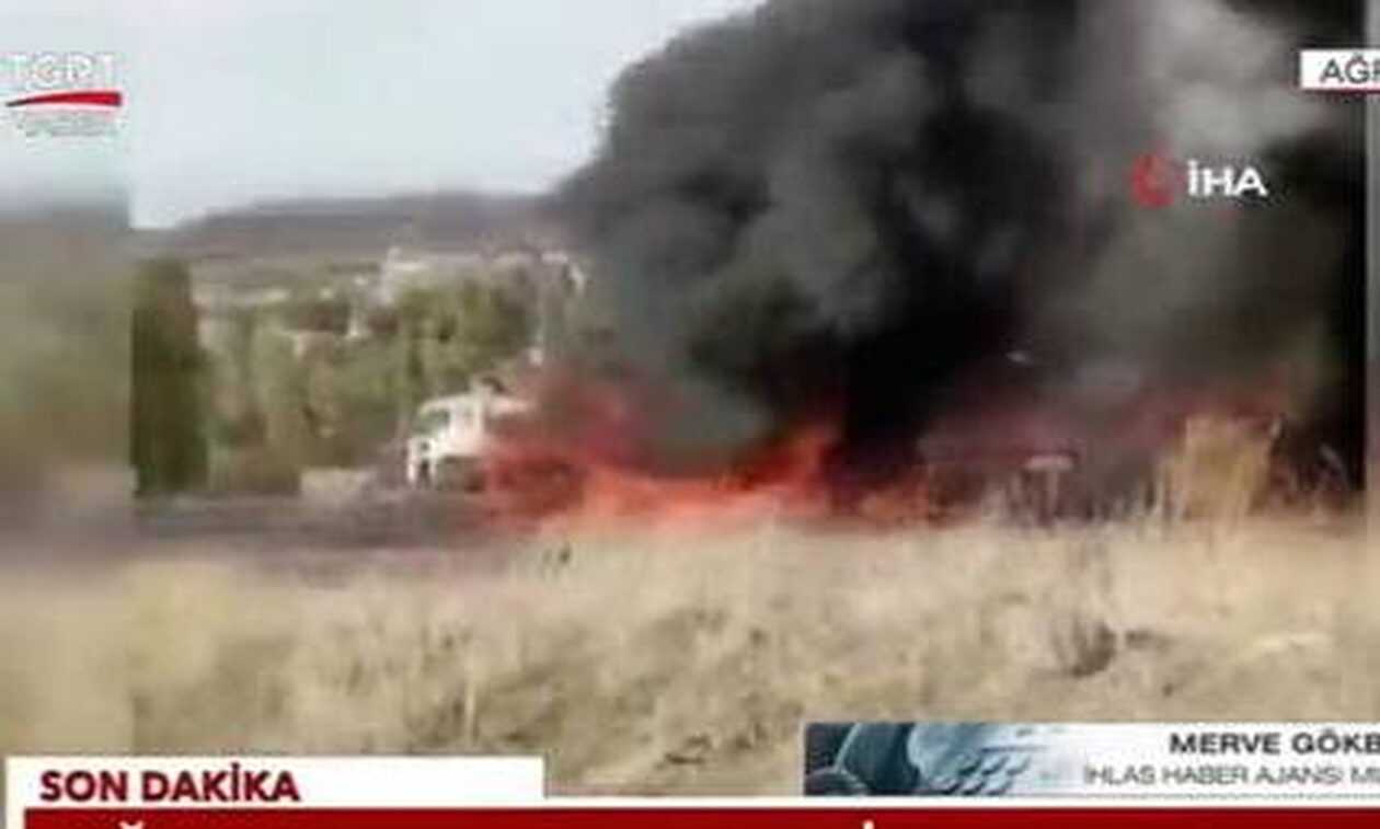 Το επιβατικό λεωφορείο συγκρούστηκε με δύο φορτηγά στο Τουτάκ, στην επαρχία Άγρι, κοντά στα σύνορα με το Ιράν και την Αρμενία, προκαλώντας μεγάλη φωτιά που έκαψε ολοσχερώς τα τρία οχήματα.