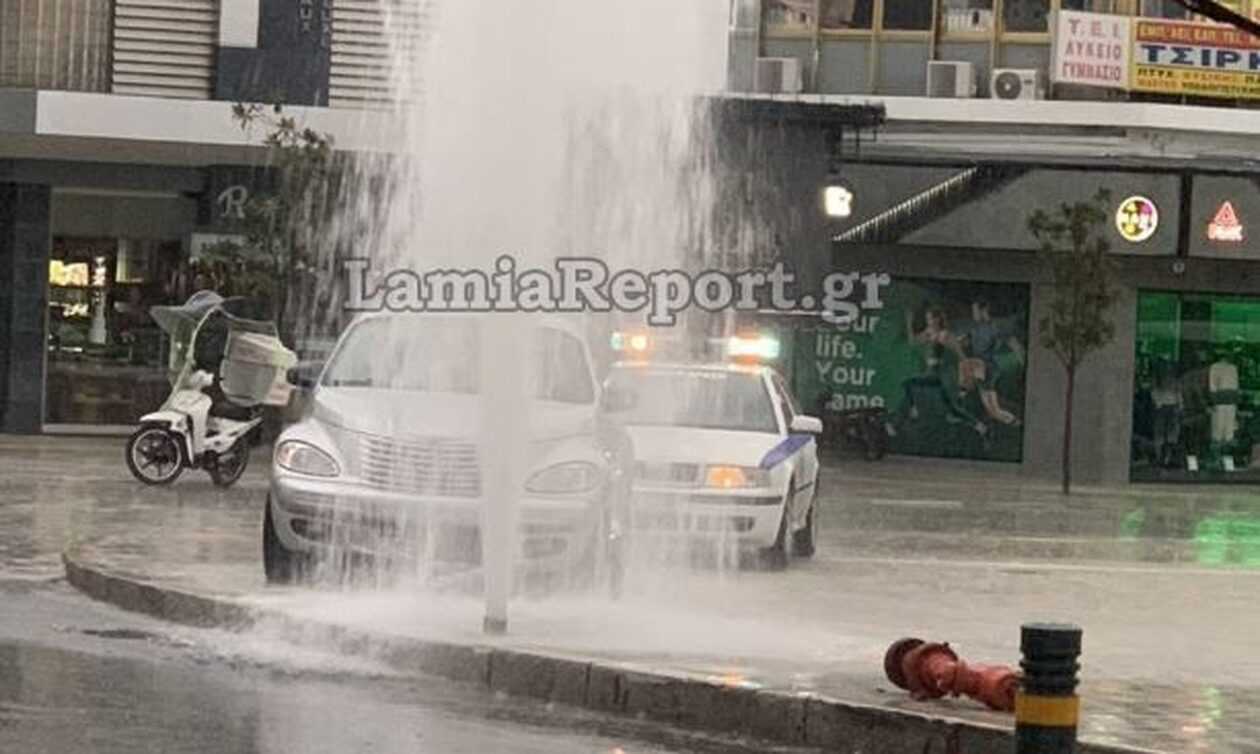 Λαμία: Αυτοκίνητο έπεσε σε κρουνό – Πίδακας νερού στην πλατεία Πάρκου