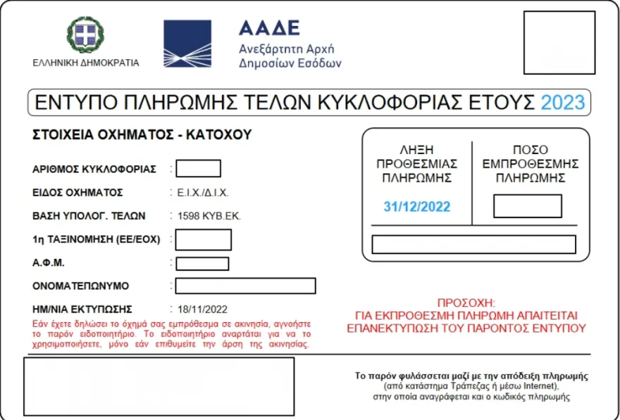 Οι κάτοχοι των οχημάτων έχουν περιθώριο έως το τέλος του έτους για την πληρωμή τους εκτός και εάν δοθεί κάποια παράταση.