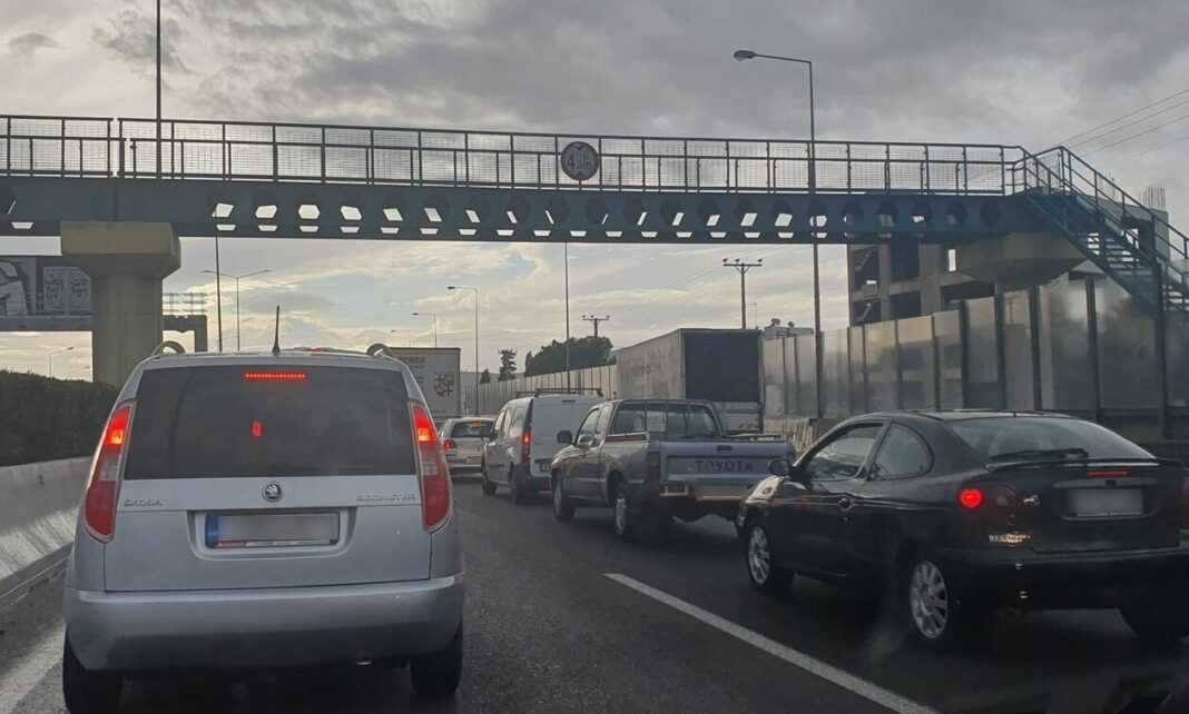 Σε συνδυασμό και με τη σφοδρή βροχόπτωση που ανά διαστήματα σημειώνεται σε πολλά μέρη του Λεκανοπεδίου, η κυκλοφορία των οχημάτων και στα δύο ρεύματα πραγματοποιείται μετ’ εμποδίων.