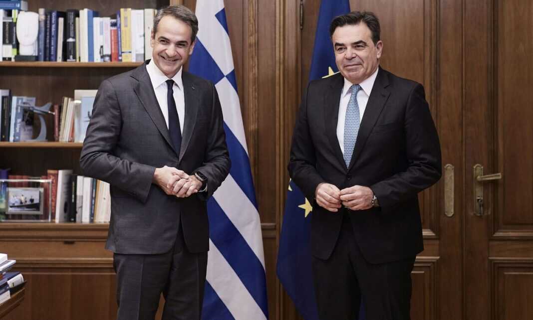 O Πρωθυπουργός Κυριάκος Μητσοτάκης είχε συνάντηση, στο Μέγαρο Μαξίμου, με τον Αντιπρόεδρο της Ευρωπαϊκής Επιτροπής, Μαργαρίτη Σχοινά.