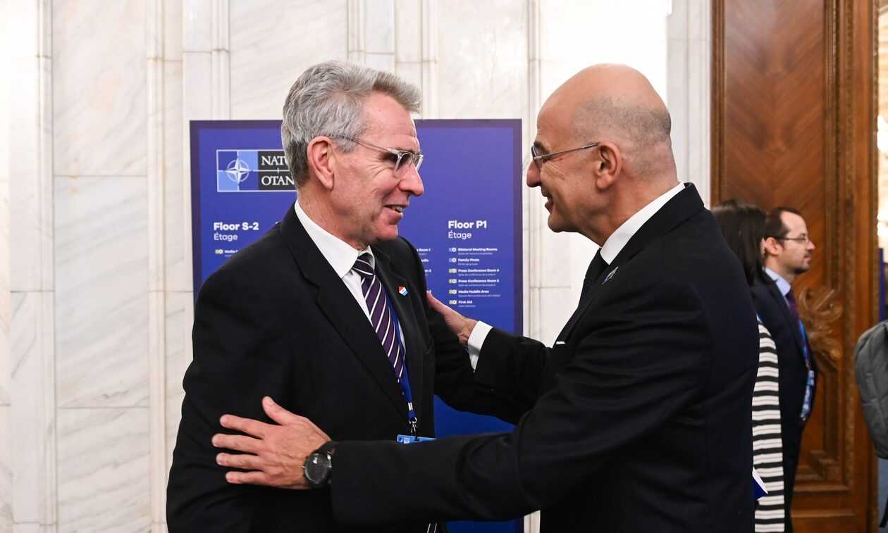Με τον βοηθό υπουργό Εξωτερικών των ΗΠΑ, αρμόδιο για ενεργειακούς πόρους και πρώην πρέσβη των ΗΠΑ στην Ελλάδα, Τζέφρι Πάιατ συναντήθηκε ο Έλληνας υπουργός Εξωτερικών Νίκος Δένδιας στο περιθώριο της Συνόδου των υπουργών Εξωτερικών του ΝΑΤΟ στο Βουκουρέστι.
