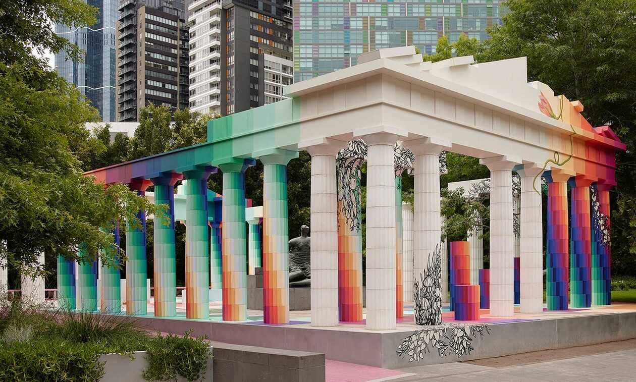 Στον Grollo Equiset Garden της National Gallery of Victoria (NGV) στη Μελβούρνη, το «Temple of Boom» τιμά τον Παρθενώνα, προσκαλώντας το κοινό να στοχαστεί για τις συνέπειες του χρόνου σε όλα τα αρχιτεκτονήματα, καθώς η δομή σταδιακά αλλάζει με έργα τέχνης και τοιχογραφίες που, σε τρεις φάσεις, από τον Νοέμβριο έως τον Αύγουστο του 2023, θα την κοσμούν.