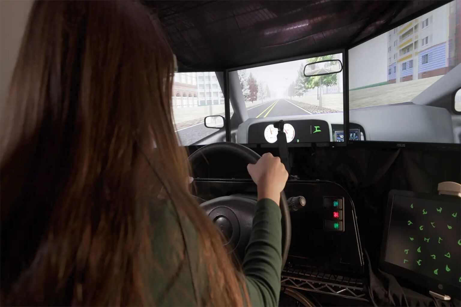 Στην εκπαίδευση προσομοιωτή που ακολούθησε, οι συμμετέχοντες κάθισαν σε μια κονσόλα με τιμόνι και πεντάλ και «οδήγησαν» σε ένα προσομοιωμένο οδόστρωμα. Φορούσαν εξειδικευμένα γυαλιά που παρακολουθούσαν τις κινήσεις των ματιών και του κεφαλιού και τους ζητήθηκε να προσδιορίσουν τον αριθμό των τυχαίων συμβόλων στο ταμπλό. Ένας συναγερμός σήμανε αν κοίταζαν μακριά από το οδόστρωμα για περισσότερο από δύο δευτερόλεπτα. Όσοι σημείωσαν κακή βαθμολογία επανέλαβαν την άσκηση μέχρι να βελτιωθούν οι βαθμολογίες τους.