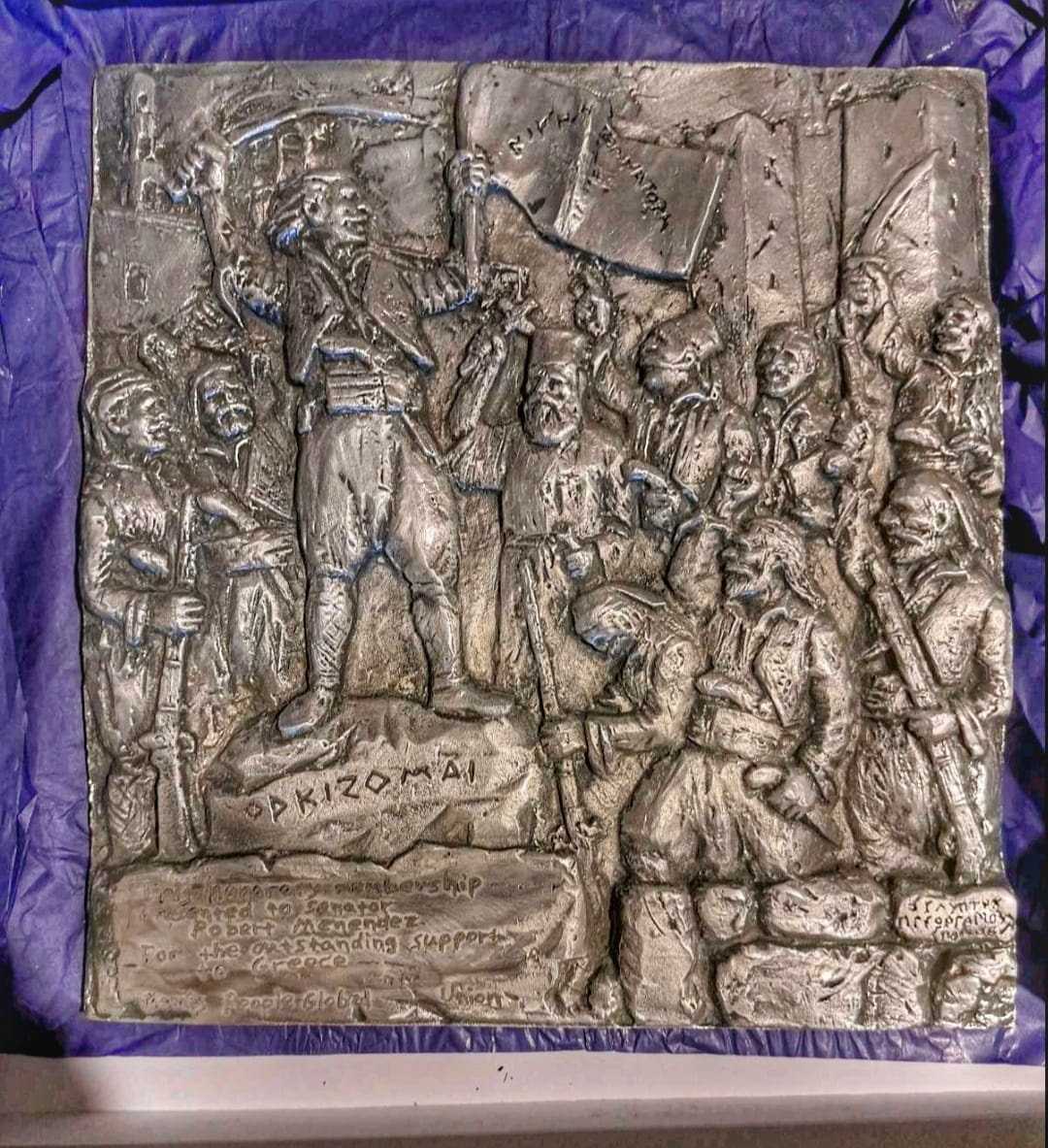 «This honorary membership presented to Senator Robert Menendez for the outstanding support to Greece».