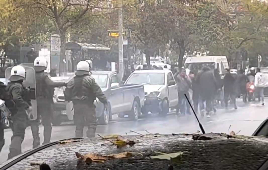 Μάλιστα, πήραν καρέκλες και σκαμπό από παρακείμενα καταστήματα προκειμένου να τα εκσφενδονίσουν προς τους αστυνομικούς.