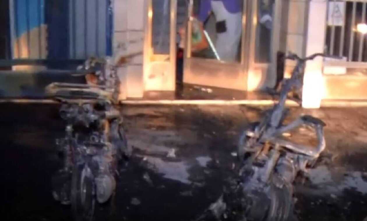 Όπως ανέφερε η ΕΡΤ, στην οδό Αγ. Ζώνης έξω από μια πολυκατοικία άγνωστοι προκάλεσαν εμπρησμό σε σταθμευμένα δίκυκλα με αποτέλεσμα να καταστραφούν ολοσχερώς τρεις μηχανές ενώ κινδύνευσε και η πολυκατοικία, έξω από την οποία ήταν σταθμευμένα.