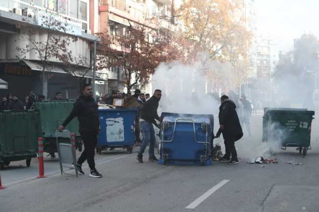 Όπως αναφέρει η ΕΡΤ, στο σημείο έχουν παραταχθεί ισχυρές αστυνομικές δυνάμεις για την αντιμετώπιση ενδεχόμενων αντιδράσεων. Λίγο νωρίτερα υπήρξε πετροπόλεμος, με τα ΜΑΤ να απωθούν τους συγκεντρωμένους πιο ψηλά προς την Εγνατία.
