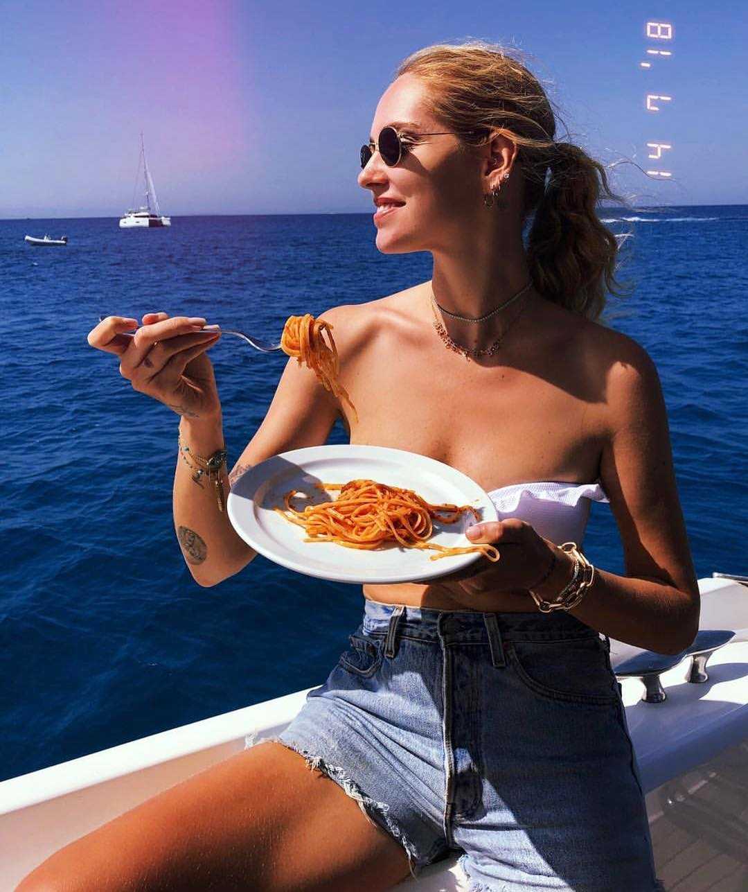 Με καταγωγή από την Ιταλία, η διάσημη Instagrammer δεν θα μπορούσε να έχει αδυναμία σε κάτι διαφορετικό. Οι πλούσιες μακαρονάδες είναι η αχίλλειος πτέρνα της. Το επίθετο δίπλα στα ζυμαρικά δεν είναι τυχαίο. Όσοι την ακολουθούν στα μέσα κοινωνικής δικτύωσης, θα έχουν σίγουρα παρατηρήσει ότι δεν μπορεί να αντισταθεί σε μια λαχταριστή γαριδομακαρονάδα με άφθονη κόκκινη σάλτσα και βασιλικό. Αμέσως επόμενη στη λίστα της η μπολονέζ.
