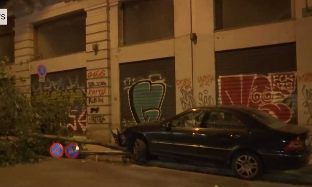Το πολυτελές αυτοκίνητο εξετράπη της πορείας του στο κέντρο της Αθήνας, «καρφώθηκε» σε δέντρο και έπειτα κατεδάφισε μια πινακίδα