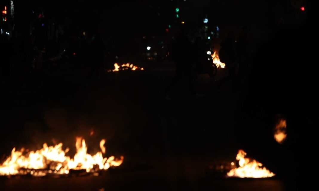 Σύμφωνα με την Αστυνομία ένας μικρός αριθμός ατόμων είχε στήσει οδοφράγματα, ενώ έβαλαν φωτιά και σε λάστιχα.