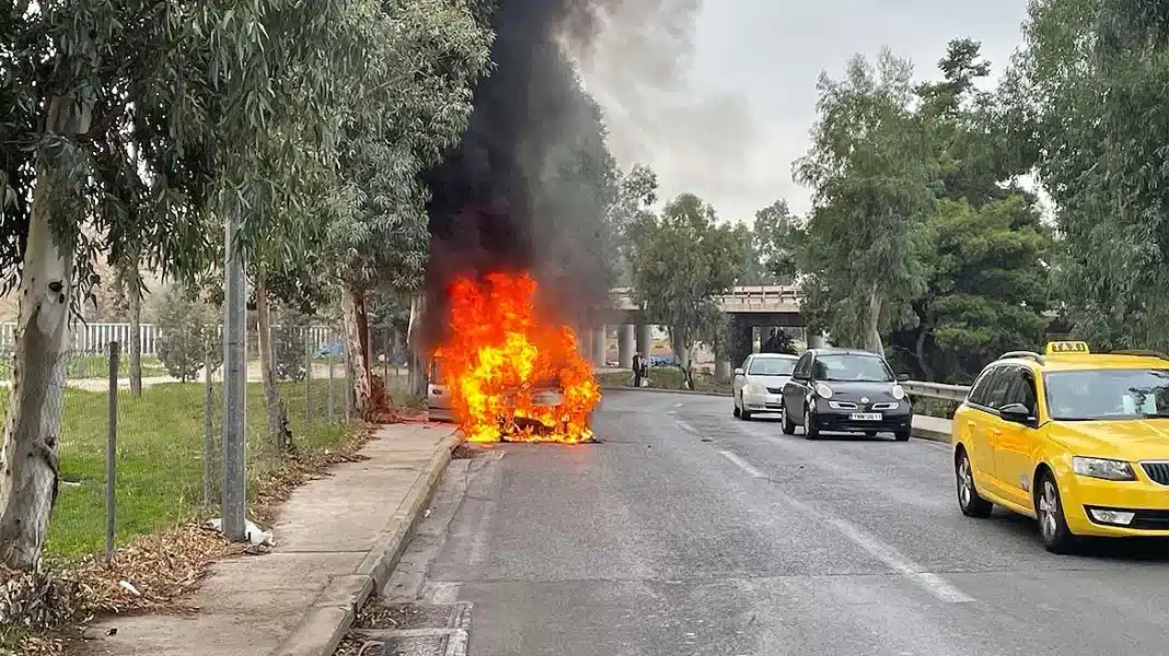 Στις φλόγες τυλίχθηκε σήμερα το πρωί (9/12) αυτοκίνητο στην είσοδο της Συγγρού από Πειραιά