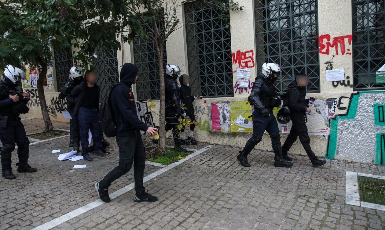 Αρκετά άτομα μετά το τέλος της πορείας για τον θάνατο του 16χρονου Ρομά από πυροβολισμό αστυνομικού κατέλαβαν το κτίριο της Νομικής Σχολής που βρίσκεται στη Σόλωνος στο Κολωνάκι