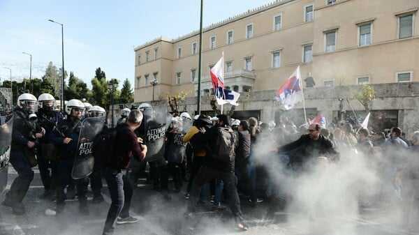 Στην πλαϊνή πλευρά του κτιρίου της Βουλής κοντά στα λουλουδάδικα, σημειώθηκε ένταση μεταξύ των διαδηλωτών και των αστυνομικών και τα ΜΑΤ έκαναν χρήση χημικών. (Χριστούγεννα 2022: Πότε θα κλείσουν τα σχολεία για τις γιορτές).