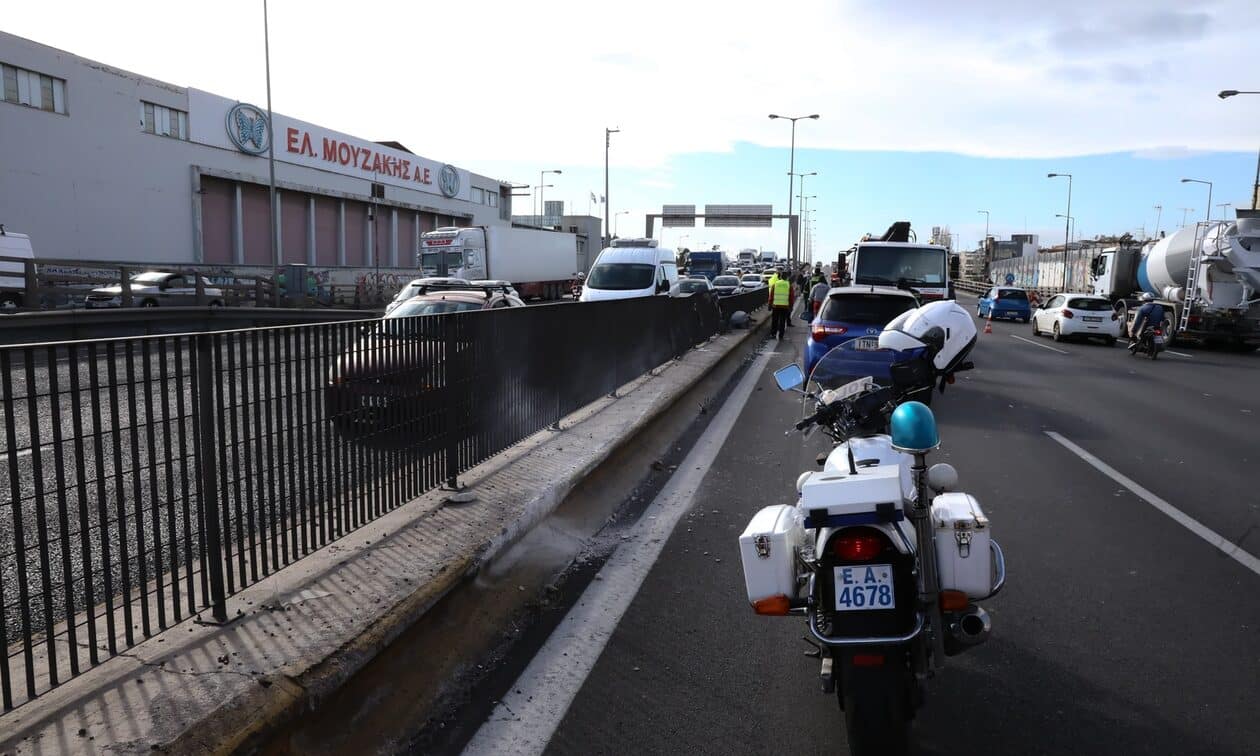 Ένα δίκυκλο εξετράπη της πορείας του λίγο τις 14:00 στην κάθοδο του Κηφισού, απέναντι από τη Renault, με αποτέλεσμα να προκληθεί μποτιλιάρισμα και ουρές χιλιομέτρων από το ύψος της Καλυφτάκη μέχρι τη Νέα Ιωνία.