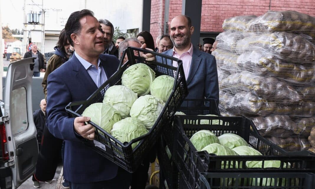 Ο Άδωνις Γεωργιάδης πήγε στη Λαχαναγορά στου Ρέντη για να επιβραβεύσει κάποιους από τους μαγαζάτορες, οι οποίοι αποφάσισαν να κάνουν το δικό τους «καλάθι του νοικοκυριού», αλλά και για να λάβει τουλάχιστον 40 τόνους τροφίμων, που θα δοθούν σε ενορίες και κοινωνικά παντοπωλεία λόγω των γιορτών