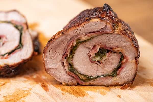 - Αφαιρούμε τους σπάγκους και κόβουμε το χοιρινό σε φέτες.