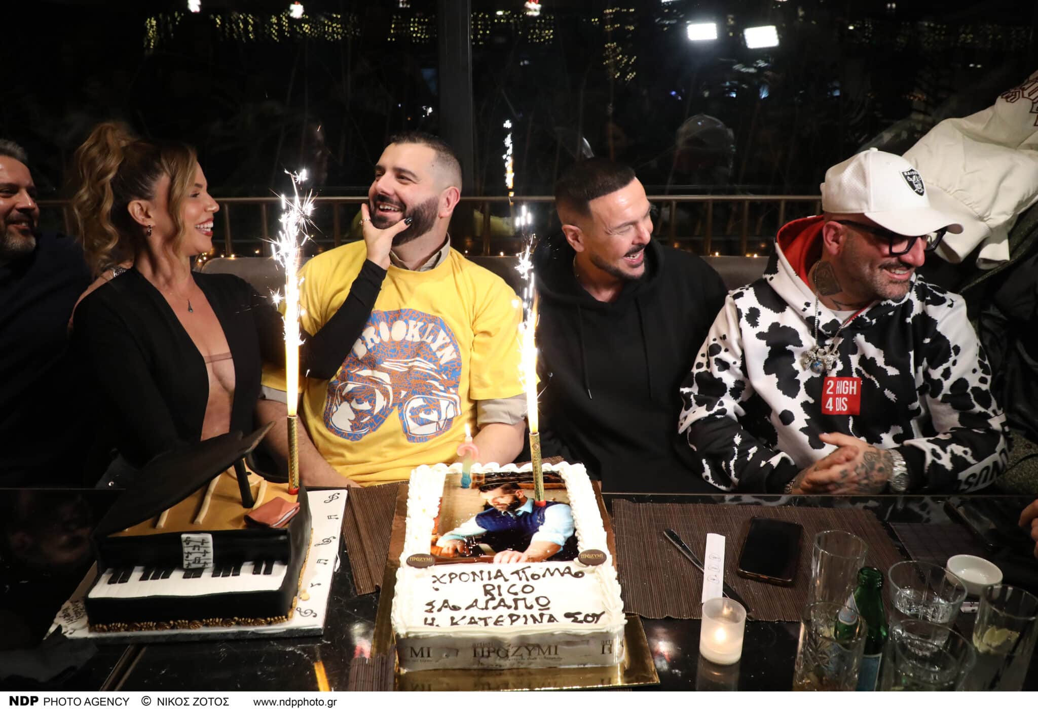 Στο μαγαζί βρέθηκαν καλοί φίλοι του Βαγγέλη Σερίφη, όπως ο Νίκος Βουρλιώτης και ο Ισορροπιστής και ο καλλιτέχνης έσβησε την ξεχωριστή τούρτα που πήρε για εκείνον η Κατερίνα Στικούδη.