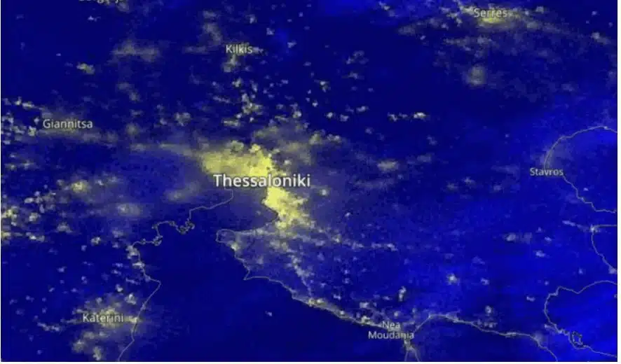 Ο δορυφόρος της NASA κατέγραψε τις φωταγωγημένες ελληνικές πόλεις, μεταξύ των οποίων η Αθήνα, η Θεσσαλονίκη, η Κρήτη, η Πάτρα, η Ηγουμενίτσα, τα νησιά του Ιονίου και η Ρόδος. (Αστρονόμοι κατέγραψαν supernova λίγο μετά την έκρηξη)