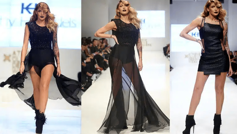 Λίγες ημέρες αργότερα ανέλαβε χρέη μοντέλου και ανέβηκε στην πασαρέλα της εβδομάδας μόδας.