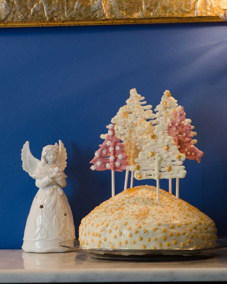 Αν θέλουμε να φτιάξουμε τα δεντράκια με τα οποία η Φαίη στόλισε τη βασιλόπιτα, θα χρειαστεί να προμηθευτούμε υποκατάστατο σοκολάτας (candy melts ή απομίμηση σοκολάτας), το οποίο λιώνει εύκολα και σταθεροποιείται αμέσως. Θα το βρούμε σε καταστήματα και e-shops που πωλούν ζαχαρόπαστες και υλικά για διακοσμητική ζαχαροπλαστική.