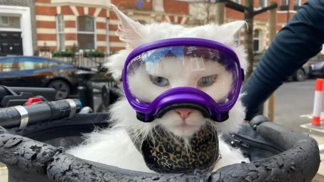 Μια πανέμορφη λευκή νορβηγική γατούλα με το όνομα Σίγκριντ απολαμβάνει να κάνει βόλτες στο Λονδίνο στο καλάθι του ποδηλάτου του αφεντικού της, Τράβις Νέλσον, τόσο πολύ που απαιτεί να βγαίνει έξω όποτε βγαίνει κι αυτός για βόλτα.