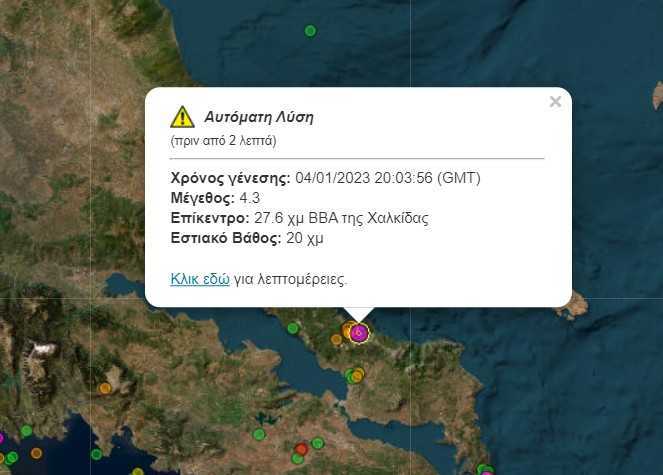 Ο σεισμός είχε επίκεντρο 20 χλμ. βορειοανατολικά της Χαλκίδας