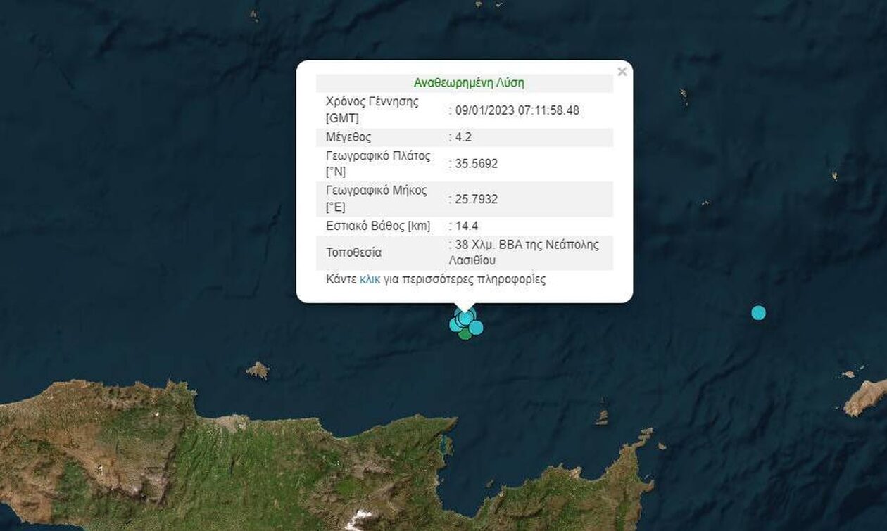 Οι σεισμοί των 3,1 Ρ, των 3,8 και 4,2 Ρίχτερ είχαν επίκεντρο τα 36 με 38 χιλιόμετρα βορειοανατολικά της Νεάπολης Λασιθίου σε θαλάσσια περιοχή, γεγονός ευτυχές καθώς η θάλασσα και η απόσταση του επίκεντρου από τα μεγάλα αστικά κέντρα προστατεύουν ακόμη και στο ενδεχόμενο ενός μεγάλου σεισμού.