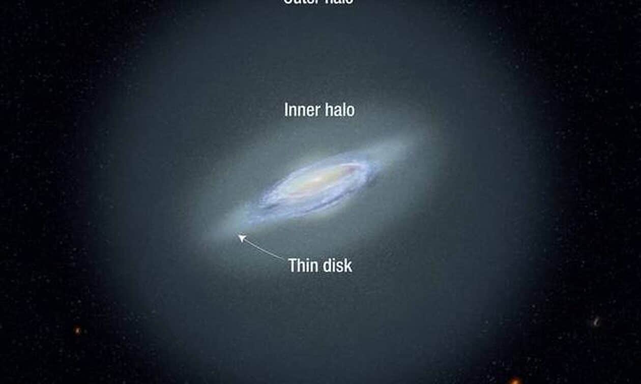 Οι αστρονόμοι τόνισαν ότι η περιβάλλουσα άλως που αποτελείται από διάφορα διάσπαρτα άστρα, είναι πολύ μεγαλύτερη από τον κυρίως δίσκο του γαλαξία μας, ο οποίος δεν ξεπερνά σε διάμετρο τα 100.000 έτη φωτός. Το ηλιακό μας σύστημα με τη Γη βρίσκεται σε έναν από τους σπειροειδείς βραχίονες του δίσκου. Στη μέση του δίσκου βρίσκεται ένα κεντρικό ‘εξόγκωμα’ και γύρω από αυτό είναι η άλως που περιέχει τα αρχαιότερα άστρα του γαλαξία μας και η οποία εκτείνεται σε απόσταση εκατοντάδων χιλιάδων χιλιομέτρων προς κάθε κατεύθυνση.
