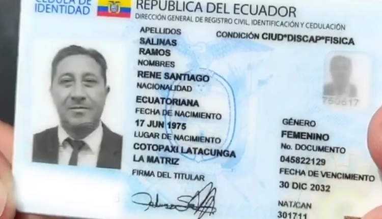 Την περασμένη εβδομάδα, ο René Salinas Ramos πήγε στο ληξιαρχείο της Azuay για να αλλάξει το φύλο στην ταυτότητά του και δεν άργησε να γίνει επίσημη η αλλαγή.