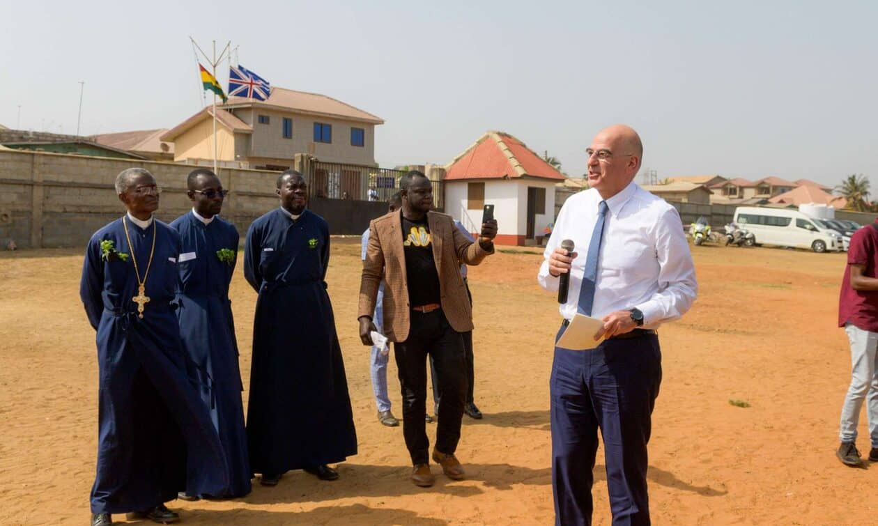 Από το ελληνικό σχολείο του Αγίου Νικολάου στην πόλη Τέμα (Tema), ξεκίνησε τη δεύτερη επίσκεψή του στην Γκάνα ο υπουργός Εξωτερικών Νίκος Δένδιας. Κατά την επίσκεψή του στο ελληνικό σχολείο, το οποίο στηρίζεται από δωρεές Ελλήνων που δραστηριοποιούνται επιχειρηματικά στην Γκάνα, ο υπουργός Εξωτερικών συναντήθηκε με Έλληνες κατοίκους, Γκανέζους επιχειρηματίες και μαθητές που μαθαίνουν την ελληνική γλώσσα και τον πολιτισμό.
