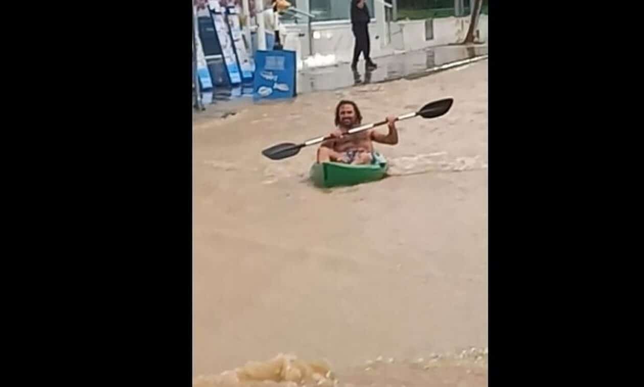 Χαρακτηριστικό το βίντεο που ανάρτηση πολίτης στο Facebook, το οποίο καταγράφει έναν άνδρα, ο οποίος φόρεσε το μαγιό του και έκανε… κανό – καγιάκ στους πλημμυρισμένους δρόμους στο κέντρο του Πρωταρά.