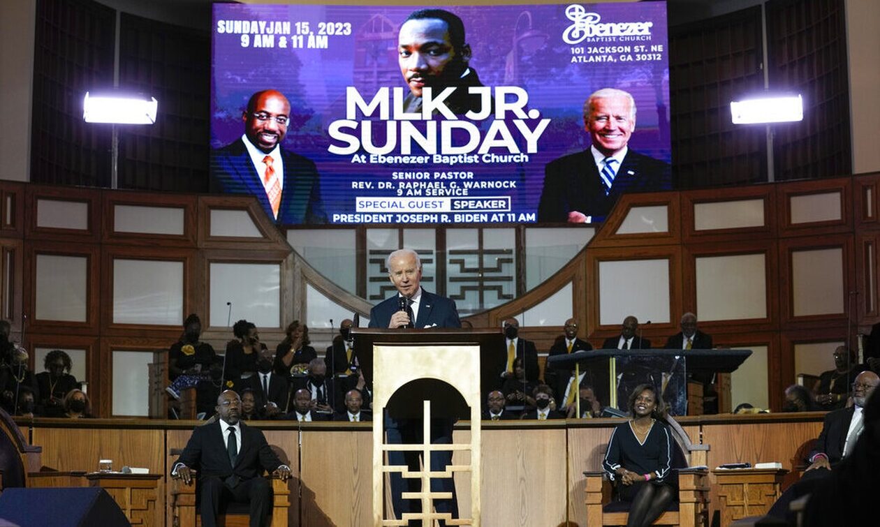 Από το βήμα της εκκλησίας του Μάρτιν Λούθερ Κινγκ στη Ατλάντα, ο Τζο Μπάιντεν αναγνώρισε την Κυριακή ότι το όνειρό του για ισότητα και δικαιοσύνη δεν έχει γίνει ακόμη πραγματικότητα και απηύθυνε για μία ακόμη φορά έκκληση για συνέχιση του αγώνα για «την ψυχή» της Αμερικής.