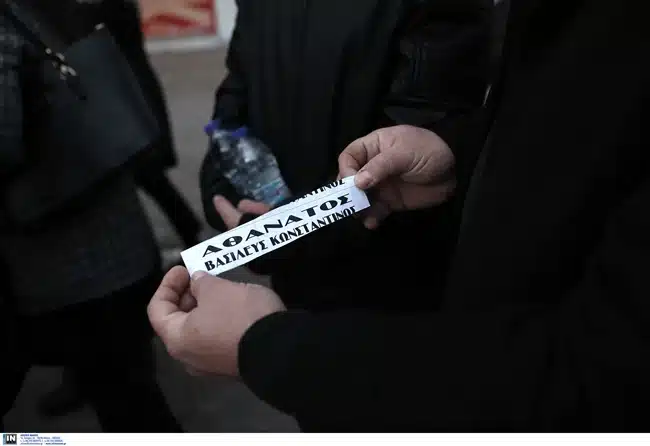Μάλιστα, ορισμένοι πέταξαν και φέιγ βολάν τα οποία έγραφαν “Αθάνατος Βασιλιάς Κωνσταντίνος”.