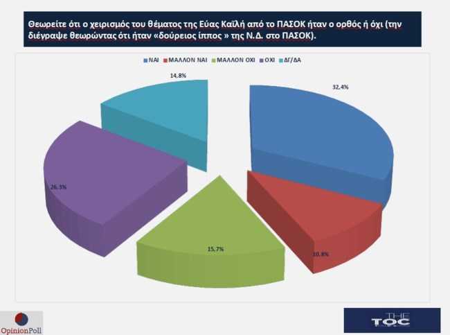 Όσον αφορά στον χειρισμό της ηγεσίας του ΠΑΣΟΚ απέναντι στο πρόβλημα, το 43.2% θεωρεί ότι ήταν σωστός ο τρόπος αντιμετώπισης, με το 42% να έχει αντίθετη άποψη. Ανάμεσα στους ψηφοφόρους του ΠΑΣΟΚ-ΚΙΝΑΛ , το 61% θεωρεί ορθό τον τρόπο που η ηγεσία του κόμματος αντιμετώπισε το πρόβλημα και το 32.8% έχει αντίθετη άποψη.