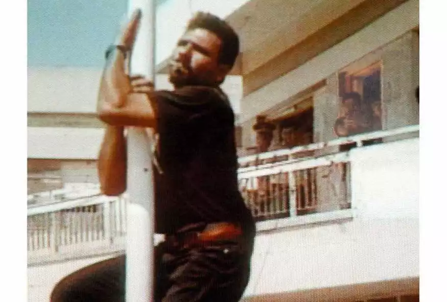 Η σκηνή μετατράπηκε σε πεδίο μάχης, όταν εμφανίστηκε μια ομάδα «Γκρίζων Λύκων» και άρχισαν τον πετροπόλεμο. Ξαφνικά ξεπετάχτηκε μπροστά από τους διαδηλωτές ο Σολομών Σολωμού και ξεφεύγοντας από τους Κυανόκρανους πέρασε στη νεκρή ζώνη και προσπάθησε να ανέβει σε έναν ιστό για να κατεβάσει την τουρκική σημαία, ενώ άλλοι διαδηλωτές προσπάθησαν να τον αποτρέψουν.