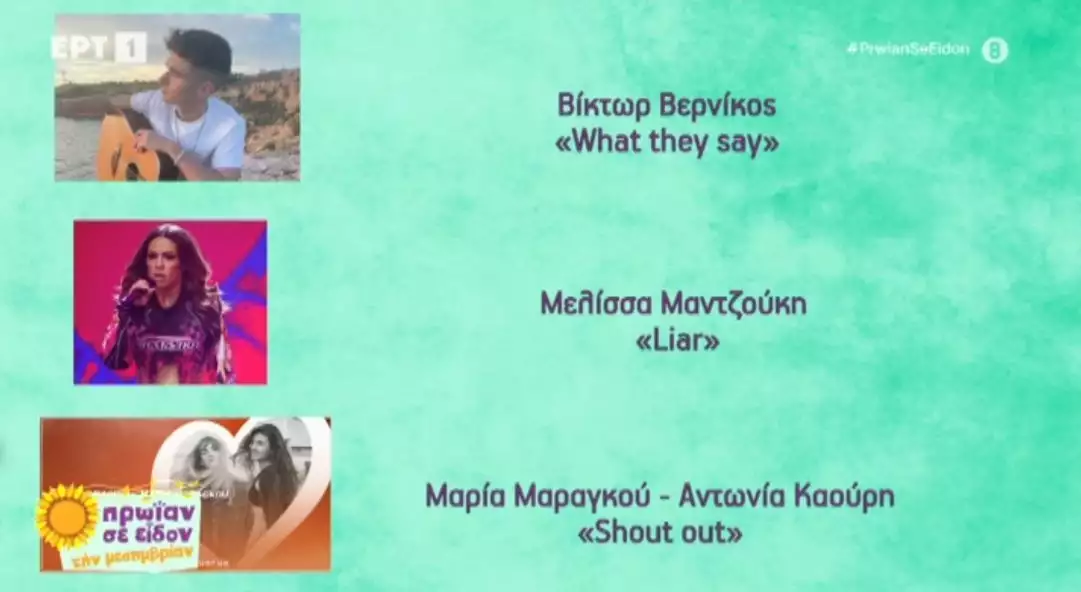 Τα τρία τραγούδια που προκρίνονται στην τελική φάση είναι τα «What they say»–Bίκτωρ Βερνίκος, «Liar»–Μελίσσα Μαντζούκη και «Shout out»–Μαρία Μαραγκού/Αντωνία Καούρη.